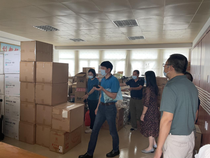 督查组一行人先对校门管理、健康监测、规范佩戴口罩、饭堂疫情防控工作、重点场所管理、核酸检测、物资储备等方面进行详细检查。实地查看了学校外来人员出入登记、师生入校通道设置、体温检测、物资储备、物资安全存放等地方,与学校领导面对面交流防疫工作心得,并对学校目前疫情防控工作落实情况给予肯定。