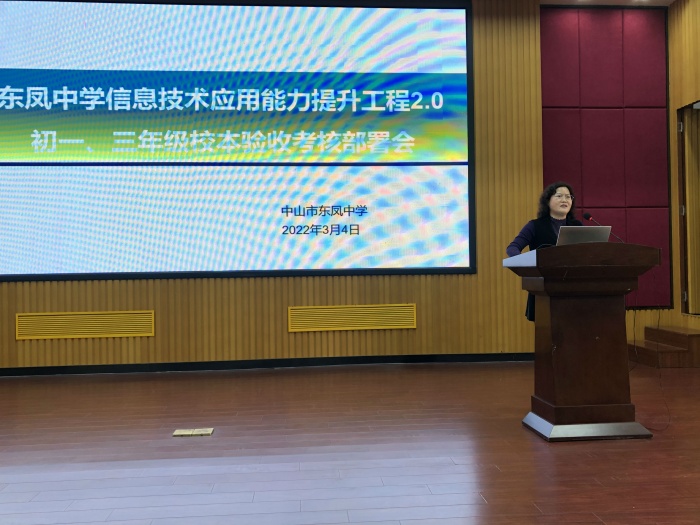 为全面推进东凤中学信息技术应用能力提升工程2.0,探索智慧课堂提高学生学习效率和课堂教学新模式,继3月4日在全校教师大会上举行东凤中学信息技术应用能力提升工程2.0七、九年级校本验收考核部署会后,3月8日上午,东凤中学又在电脑室召开七、九年级校本验收研讨会。会议由蒋燕梅副校长主持,出席会议的有刘喜全校长、学校提升工程2.0管理团队、指导团队及各学科组长、备课组长。