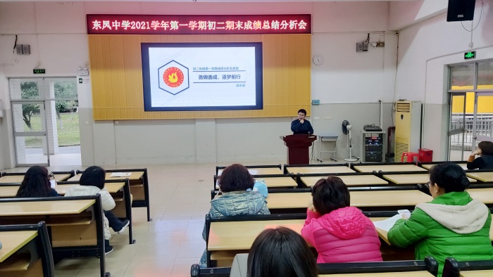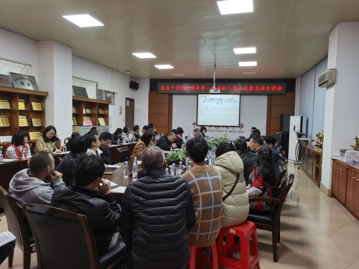 2021-2022学年第一学期期末考试已告一段落,为全面地了解学校教学现状,找寻尚存问题,总结经验,提高教学质量。近日,东凤中学召开市期末考试质量分析会和重点学科质量分析会。全体老师参加本年级的成绩分析会。