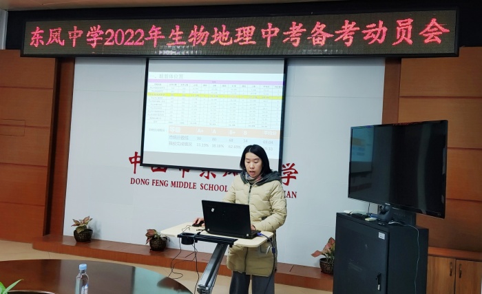 2022年2月22日下午,东凤中学生物地理中考备考复习动员会于接待室召开。大会由温永谊副校长主持,学校领导刘喜全校长、初二落级行政以及全体生物、地理老师参加本次动员会。