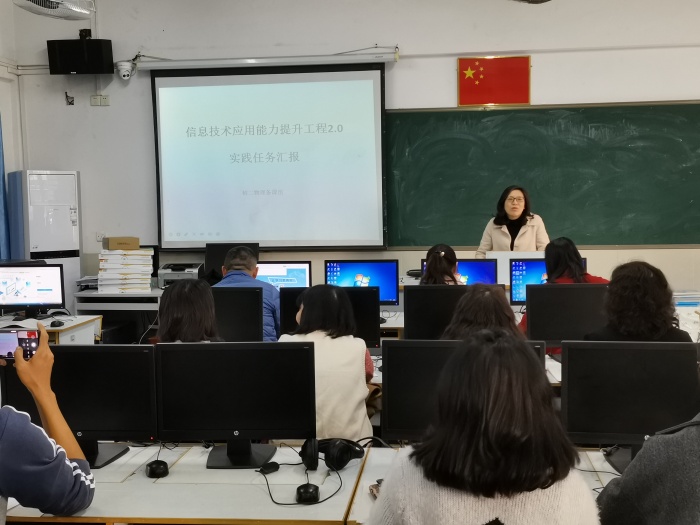 首先,蒋燕梅副校长提出信息技术应用能力提升工程2.0的验收时间节点及要求,肯定了由备课组长李玲老师所带领的初二物理备课组已率先完成了校本研修,号召其他备课组向初二物理备课学习,争取早日完成校本研修任务。