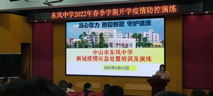 会议第一个环节,由东凤中学廖小雯校医就学校疫情防控事项进行讲解,对东凤中学新冠肺炎疫情应急处置进行培训及演练,明确学校重点岗位教职员工防疫职责与任务清单,强调疫情防控不能松懈。