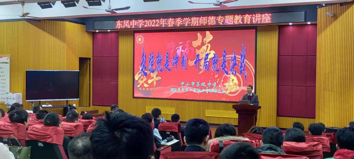 会议第二个环节,由东凤中学刘喜全校长开展师德专题教育讲座。刘校长向全体教师再次明确:打造一支有理想信念、有道德情操、有扎实学识、有仁爱之心的“四有”好老师队伍,是学校办学的重要任务。新学期要切实加强教师思想政治工作,引导广大教师自觉做先进思想文化的传播者、党执政的坚定支持者,更好地担起学生健康成长的指导者和引路人。他要求教师规范自己的职业行为,树立以德立身、以德立学、以德施教、以德育德、以德树人的良好教师风貌,保护学生的身心健康,保障学生的合法权益,促进东中学子德智体美劳全面发展的目标。接下来,刘校长和全体教师共同学习了教育部《中小学教师违反职业道德行为处理办法(2018年修订)》和《中山市中小学(幼儿园)教师师德考核负面清单(试行)》,要求全体教师对照《中山市中小学教师师德报告表》中的相关标准要求,做一次师德师风自查自纠。同时还在专题教育讲座之后,全体教师现场签订《中山市教育系统人员师德承诺书》《中山市教育系统教学、教科研人员守信承诺书》和《中小学校严禁在职教师有偿补课承诺书》。