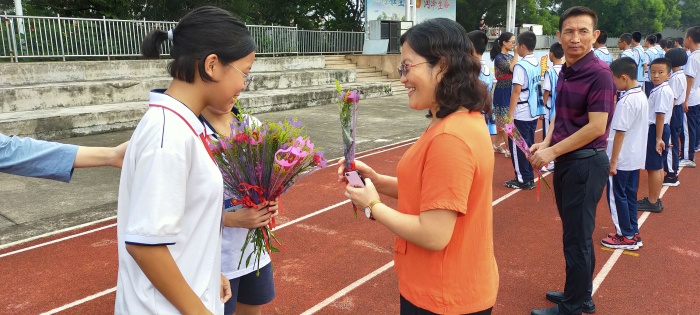 秋天是收获的季节,更是感恩的季节。为大力弘扬尊师重教的社会风尚,鼓励教育工作者在教书育人岗位上为党和人民事业作出新的更大的贡献,9月10日上午,东凤中学在运动场隆重举行升旗仪式暨庆祝第36个教师节活动颁奖典礼,全体教职工及学生出席了此次活动。