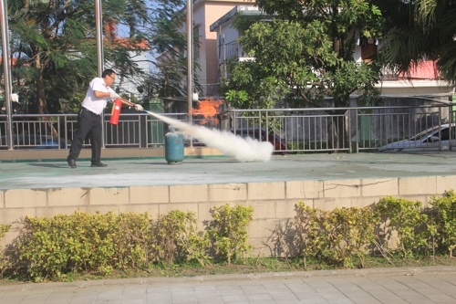 此次消防安全疏散演练活动采用实战方式进行,用烟饼制造烟雾模拟火情,随即拉响警报,各楼层人员迅速到位指挥学生捂住口鼻有序撤离到安全区域。学生到达后,班主任快速清点人数,并逐级上报。短短四分钟内,两千多师生全部安全疏散到广场。随后安全处谢主任及时针对此次疏散演练进行了细致的总结,并为师生讲解灭火器的使用方式,同时进行了演示。部分班主任也受邀上台操作灭火器进行灭火。最后鹏诚学校张星海校长对此次消防安全应急疏散演练进行了总结,表扬了演练活动中师生逃生的镇定以及有序,同时也强调师生在遇到危险时,要沉着应对,及时报告、及时逃生,提高应对紧急突发事件的能力。