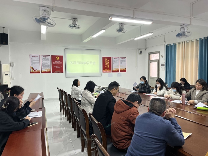 接着,老师们移步阜沙中学一楼会议室进行“名著阅读沙龙”活动。本次沙龙主题是针对命题形式的改变,如何开展名著阅读教学和复习。阜沙中学雷晓青、刘牧虹、刘乐琴老师,牛角中学张宏芳老师,鹏诚学校青年教师代表发言,共同交流了在语文名著阅读教学中存在的难点,肯定了名著阅读的计划性对阅读习惯培养的作用,结合具体教学实例分享名著阅读教学方法,同时也认为名著阅读需要新颖形式来激发学生阅读兴趣。最后,易晓军教研员对刘乐琴老师的课堂给予肯定,并做总结发言。