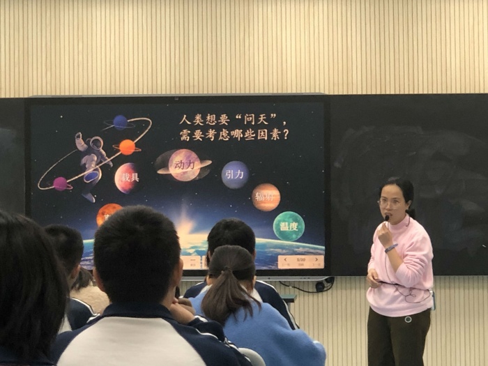 本次的课题组活动分为教师授课和交流研讨两个环节。第一环节由课题组成员孙妙芳老师上跨学科主题研讨课《问天之路》。整节课孙老师用心设计每一个教学活动和环节,每一个活动都紧紧围绕跨学科主题学习目标进行,层层深入,既培养学生综合运用不同学科知识解决问题的能力,又强化了学生对于结构决定性质,性质决定用途的化学大概念教学的运用,学生们通过老师精心设计的问题,一步步认识到跨学科知识对解决我国航空技术问题的重要性,同时也让学生在学习的过程中领略到我国科技发展带来的自豪感和使命感。第二环节课题组全体成员集中交流研讨,针对孙老师整节课的设计思路提出了许多很有启发性的想法,例如:如何进一步厘清跨学科主题学习的重难点,如何降低学生学习的难度,如何提高了学生参与课堂活动的积极性等等。课题主持人梁锡老师就基于跨学科主题学习课堂教学中大概念的提取提出了宝贵的建议。课题组通过本次研讨活动统一了“聚焦专题—课堂实践—反思重建”的研讨模式。