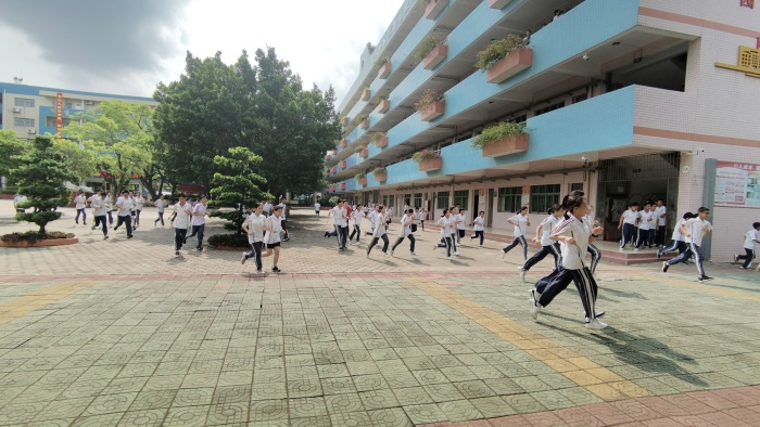 上午9点35分,警报声突然在校园响起,各楼层快速反应,正在课室的教师立即组织学生从课室紧急撤离,有序地疏散到足球场迅速集队,完成人数清点、人数报告以及计时任务。集队后,港口中学团委副书记王宙点评紧急疏散活动过程中的优点和不足,希望同学们在紧急疏散中要始终保持紧张的状态,做到快速、安全、有序撤离,以科学的态度和方式呵护自己的生命安全。