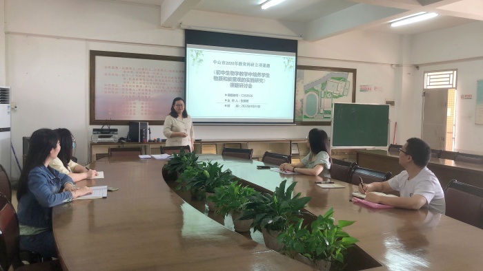 新年变物华,春意日堪嘉。在这芳草发芽,梨花未雨的美好春日里,为了扎实推进课题研究工作,促进教师专业发展和教学能力提升。4月23日上午,中山市港口中学2020年市级立项课题《初中生物学教学中培养学生物质和能量观的实践研究》课题组全体成员齐聚港口中学,召开本学期课题研讨推进会,本次会议由课题主持人张丽君老师主持。