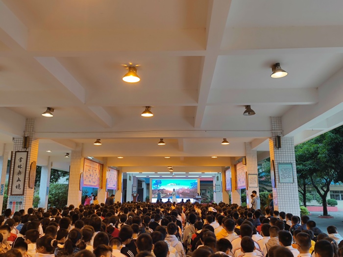 本次大赛由学校教学处和初一年级语文组联合举办,学校廖志坚校长、范泰昭副校长、莫谋珍老师、何中庆老师、李红蕾老师等评委老师出席了此次活动。来自初一年级的各班40多位选手,共同为初一年级师生们献上了一场激情饱满的朗诵盛宴。