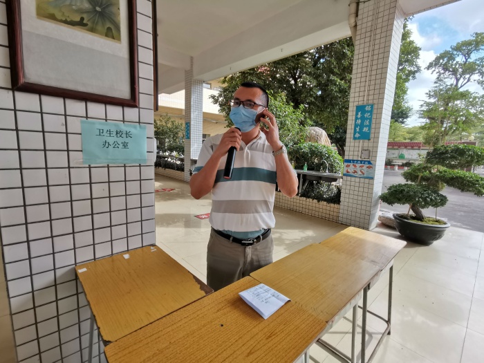 演练后,德育处副主任张建荣对全校师生进行疫情防控指导培训,特别强调做好校门入口关,宿舍把控关,严防感染性疾病进学校进班级,做好卫生清洁保洁与日常消毒,特别是勤洗手。注意课室打开门窗,时刻保持空气新鲜流通,及时倾倒课室垃圾,认真做好早、中、晚三次体温检测和登记,如有异常,立即向校医室报告。