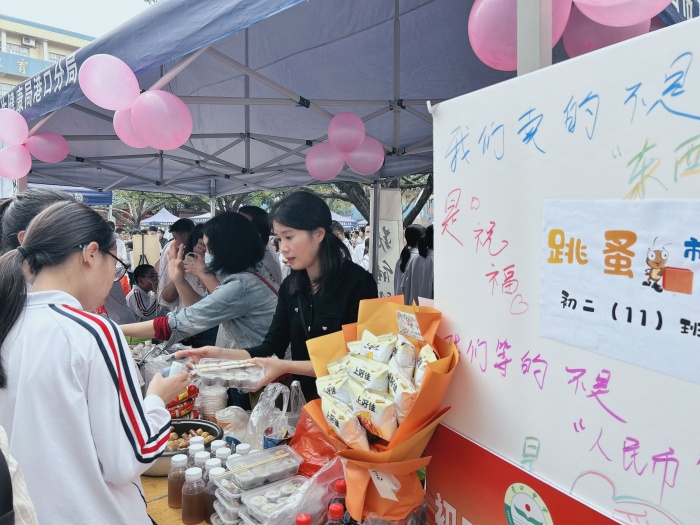 爱心鸡爪、暖心糖水、精巧手工、可爱玩偶、甜美饰品、精美图书等等,全都映入了大家的眼帘,物随风动,心随物动。此时,争相购买的热情师生与家长都奉献出自己的一片爱心,并于其中享受着这一切的热闹与欢喜。除此之外,脑筋急转弯、十万个为什么、猜字谜、隔空丢圈圈、点歌献唱、现场表演等各种活动也都竞相上演,秦声通校长、范泰昭副校长、张丽君副校长等学校领导也与大家打成一片,完全投入到活动中,与同学们热闹在一起。其他师生、家长也都各显本领,在贡献自己的一份爱心的同时也纷纷赢得了自己的心爱物品以及大家的掌声与喝彩。