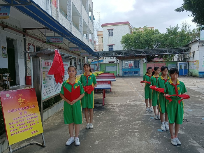 5月30日上午,在“六一”国际儿童节来临之际,港口港源学校“喜迎二十大, 红领巾心向党”六一主题队日暨“新队员入队仪式”活动如约举行。
