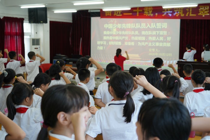 鲜艳的红领巾迎风飘,鲜红的队旗迎风展!汇翠学校每一位少先队员将牢记誓词,在星星火炬的引领下,继续发光发热,争做时代好少年!