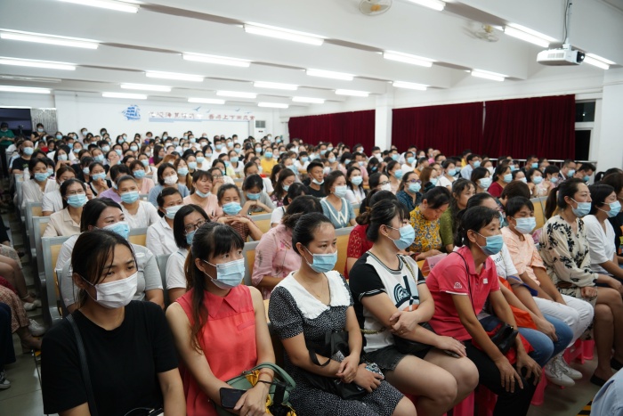 一年级新生家长见面于2020年8月28日晚七点整,在汇翠学校四楼报告厅正式举行。当晚的会场,庄严又不失激动,庄重又不失活泼。家长们时而专注地用笔细心记录,时而因老师们的有趣表演开怀大笑。