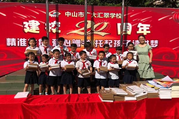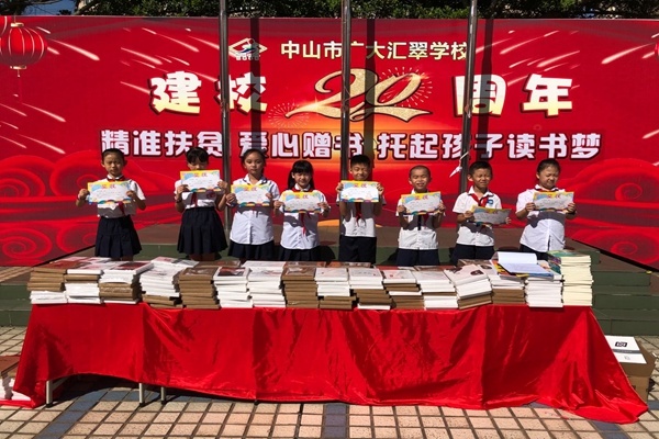 一册书一份情,一缕书香一片心。伴随散学礼,中山市广大汇翠学校全体师生响应坦洲镇“精准扶贫 爱心赠书 托起孩子读书梦”捐书倡议活动的号召,举行了爱心捐书活动。大队辅导员林玲老师带领全体学生参加本次的捐书活动,大家纷纷带上平时闲置和自己喜欢的读物,来到学校升旗台进行了捐赠。本次捐赠的书籍种类多种多样,数量更是达三千多本,汇聚一股情系广宁、爱心汇翠的暖流。