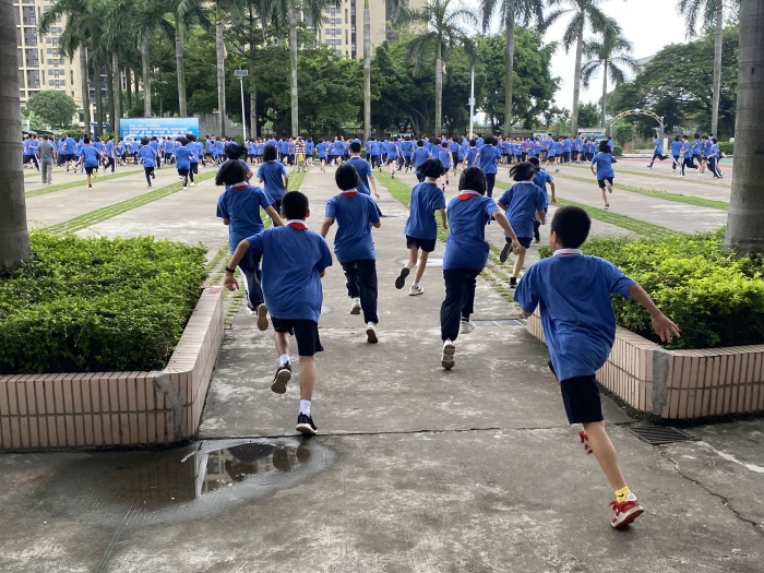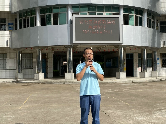 为了加强全体学生的安全教育,提高消防应急处置能力,增强防范意识,应对突发事件,2021年9月24日大课间,海洲中学在没有预告学生的情况下,进行了安全应急疏散的实战演练,全体师生认真严格地按照演练方案参与了本次演练。