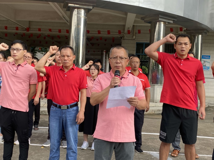 9月1日上午8点,海洲中学全体师生迅速集中广场,举行简单而又隆重的开学典礼。开学典礼由袁锦钊副主任主持。