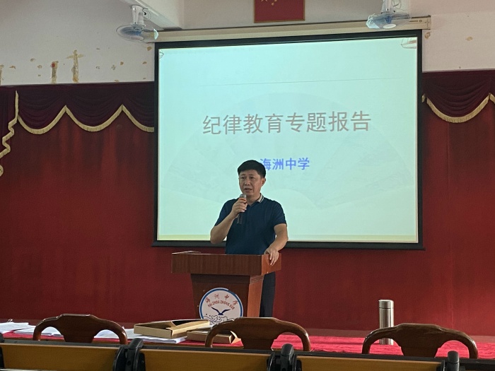 为深入贯彻党和国家关于加强教师师德师风建设重要精神,认真落实《中山市教育和体育局关于开展2020年师德建设主题教育月活动》和古镇党委关于公职人员纪律教育的相关要求,2020年10月16日下午,中山市海洲初级中学全体教师集中学校阶梯室,召开纪律教育专题会议。本次会议由海洲初级中学党支部书记、校长敖万军主讲。