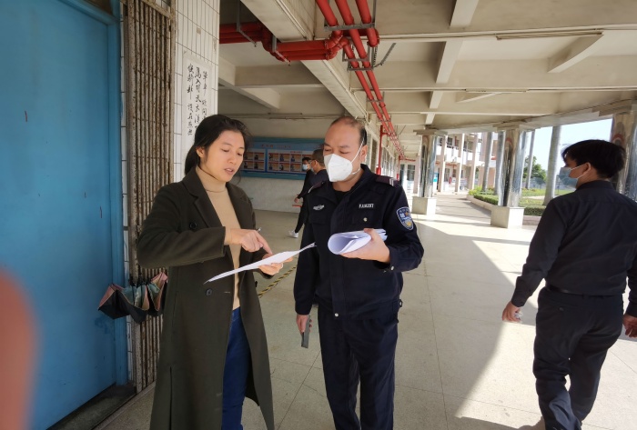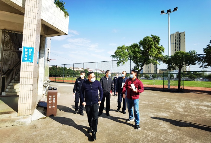 当天上午,古镇镇教育和体育事务中心副主任林梗卿,孔国范老师会同古镇镇公安分局杨恩太等四名警官,来到海洲中学进行创建更高水平的“安全文明校园(平安校园)”考评验收。