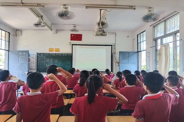 最后,各班孩子都举起右拳宣誓,大声喊出誓词“我是中国人,我是炎黄子孙,龙的传人,我爱伟大的祖国!我爱伟大,光荣,正确的中国共产党!我爱勤劳智慧的人民,我爱我的家乡,我爱我的学校!牢记历史,振兴中华,好好学习,天天向上。做有理想,有道德,有文化,有纪律,合格加特长的革命事业接班人。”通过铿锵有力的呐喊,相信孩子们在今后的学习生活中,努力进取,长大后成为社会主义的接班人。