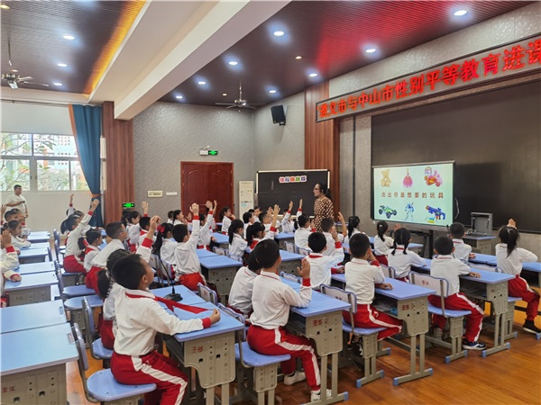 上午,考察团首先参观了校园,他们对丰华学校的书法、剪纸等艺术教育方面的成就做出了充分的肯定和高度的赞誉。接着聆听了丰华学校张佩霞老师带来性别平等教育专题课《性别跷跷板》和麦海容老师带来的性别平等教育美术融合课《我的玩具伙伴》。
