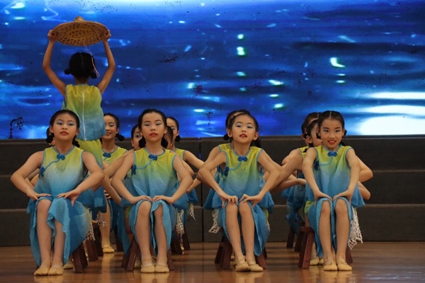在颁奖仪式中,菊城小学舞蹈社团的队员们给大家带来了精彩的表演《小儿垂钓》,活泼可爱的笑容、活灵活现的舞姿给散学典礼增添了喜庆的光彩。
