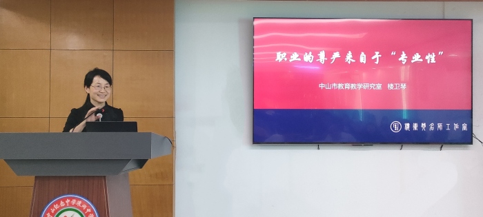 第二个环节,楼卫琴老师做了《职业的尊严来自于“专业性”》的讲座。结合自身的从教经历,楼老师围绕专业性的“灵魂”“内涵”“外形”三个维度谈了教师如何提升专业能力。第三环节青年教师们真诚而精彩的分享交流,从不同的侧面对个人专业成长、课堂教学、对《有效学习》和《项目式教学》的读书感悟进行了分享。第四环节,中山市华侨中学教学处主任陈建春首先对中山纪中浪网中学青年教师们的课堂教学探索展示做了精彩的点评,紧接着又做了《有效课堂之课堂观察量表开发与运用》的专题讲座。最后何晋中主任围绕新教师的成长,给新教师提出三点建议:第一,围绕课堂教学,确定提高教学质量为突破口。第二,聚焦课堂教学。第三,新教师要多听课,多看书。从书本上获得新知识,从实践中践行知识,教育教研能力才能提高,成为一个有影响力的老师。