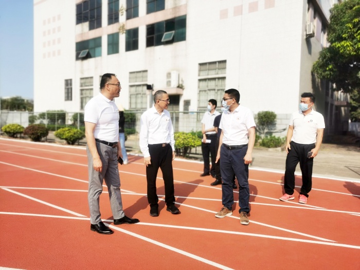 4月15日下午,中山纪中浪网中学督学黄海文陪同火炬开发区党工委委员、民众街道党工委副书记、办事处主任黄声群调研学校校园设施建设和校园文化建设工作建设工作。