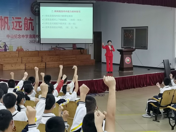 为了让毕业班树立正确的中考目标、增强学生学习的主动性,激发学生学习的兴趣,解决学生在中考复习备考中的问题,3月4日下午学校邀请心理专家栗瑜老师对全体学生进行主题为《如何提升内驱力》的励志专题教育,由团委副书记陈比比主持。