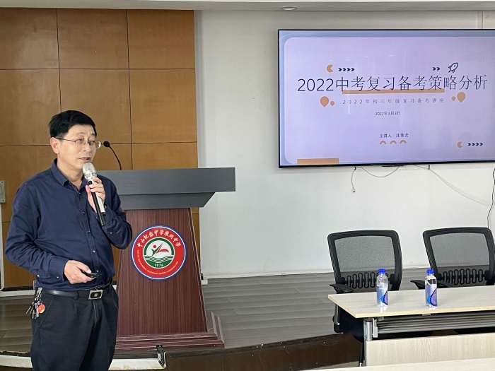 3月4日纪中浪网中学邀请沈伟忠专家到学校开展2022年中考复习备考策略分析专题讲座。学校初三全体教师、初一和初二全体备课组长,以及所有空课的教师在学校教师会议室共同聆听了这场精彩的讲座。