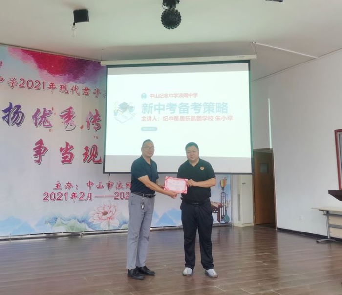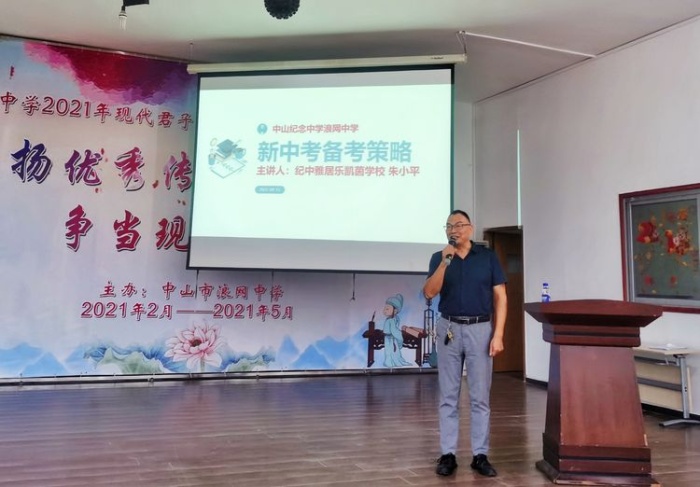 为了促进教师的专业发展,增强科学备考、精准备考的意识,提高中考备考的效率,科学备战中考。2021年9月15日,在楚东升校长的亲自策划下,学校非常荣幸地邀请到纪中雅居乐凯茵学校的朱小平主任来为中山纪念中学浪网中学全体教师和中山纪念中学民众中学教师授课。本次主题为《新中考备考策略》的专题学习活动由邱慎明副校长主持。