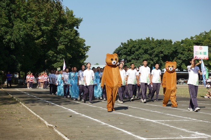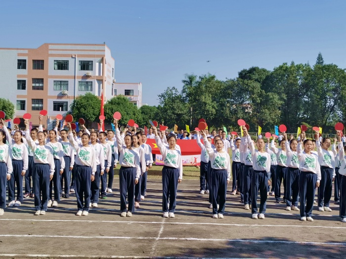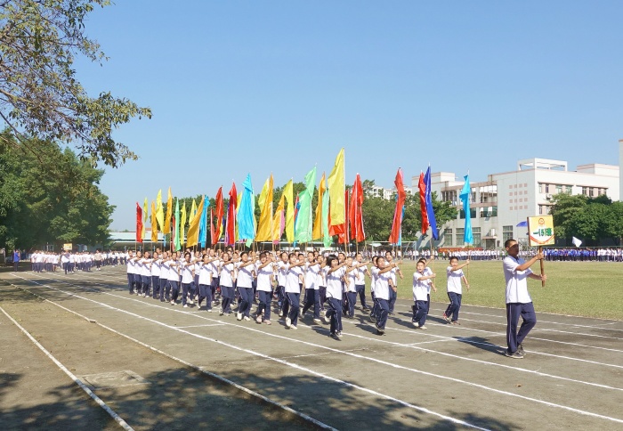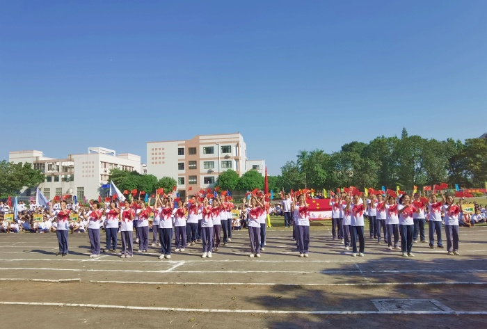 开幕式尾声,在一场精彩的舞狮表演之后,全体师生面向国旗,唱响国歌。邱慎明副校长为校运会致辞,希望同学们在校运会中发扬拼搏精神,为班级争光。伴随着校园四周依次响起的爆竹声,杨铨标校长慷慨激昂地宣布第二十五届校运会正式开始。