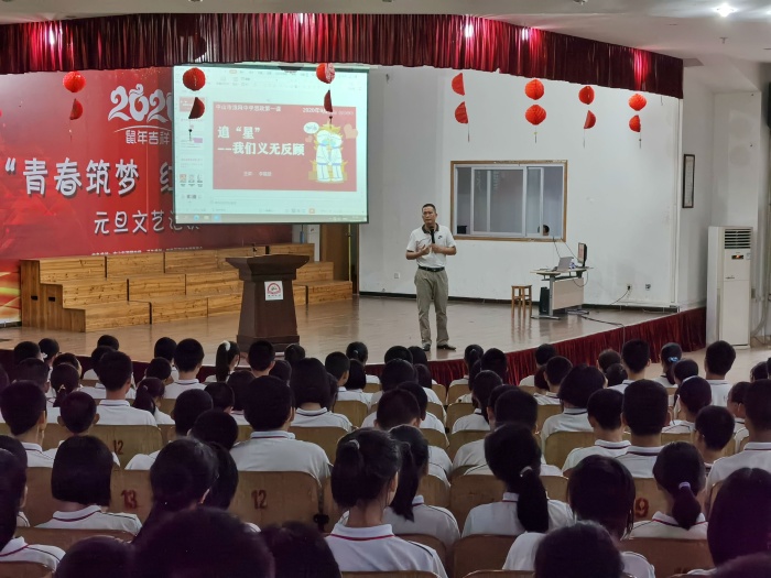 2020年9月30日下午,浪网中学“思政第一课”开讲了。李锡堂校长在阶梯礼堂给全体师生上了一节以“追‘星',星空体育义无反顾”为题目的“思政第一课”。
