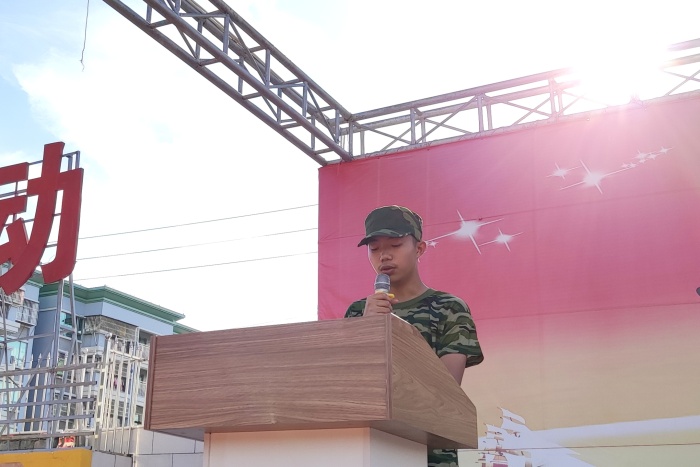高一1班范天铭同学作为学生代表发表了讲话,“要向教官学习,加强集体观念的培养;要严格要求自己,让每一天都有新的收获和感悟。”