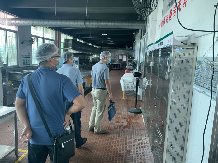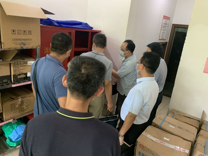 中山市教育主管部门领导一行先在会议室查看学校防疫资料、师生暑期旅居史台账、教职工和学生返回中山的情况,接着去了饭堂检查卫生、防疫等,查看了医务室以及物资储备室的防疫物资准备情况,同时详细询问每一项物资储备了多少、还缺多少,并要求学校要继续把工作做严做实,多储备一些防疫物资,做到心中有数。