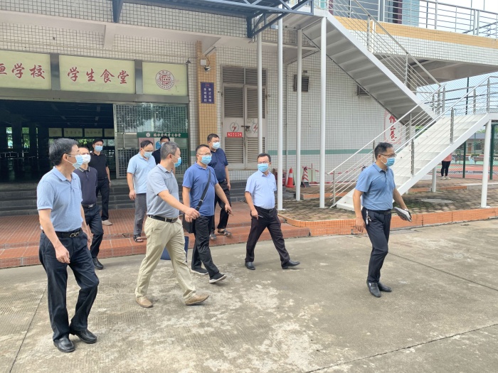 学校是疫情防控的重要关口,关乎广大师生生命安全和身体健康。2021年8月19日下午3:00,中山市教育主管部门领导莅临我校检查指导对新冠病毒疫情防控以及开学准备工作,民众街道教体中心黄海文主任陪同前往,德恒学校韩望东校长、邓新军副校长亲自接待。