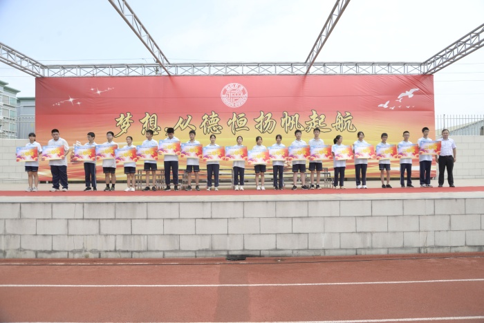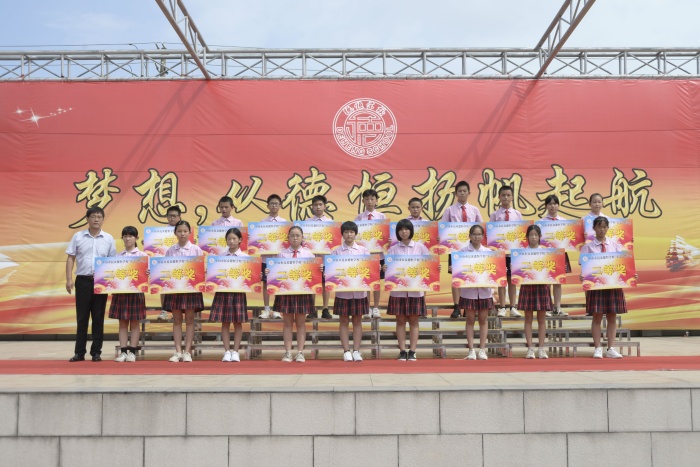 在全场气氛被推向高潮之时,统筹管理教务工作的教导处邓新军主任为典礼致辞。邓主任提出,近年来,中山市民众德恒学校能够取得辉煌的发展,离不开集团的大力支持,也离不开老师们和同学们的勠力同心,更离不开家长们的协作配合。在2020年上半年,德恒学校在中考成绩又实现了新的历史性的突破,为德恒的史册上又增添了浓墨重彩的一笔。邓主任希望借此激励孩子们:“宏志奖”秉承着“追求卓越,超越自我”的校园精神,鼓励孩子奋发读书的初衷,希望孩子们能够树立远大的志向,培养勤奋刻苦的精神,更要学会创新学习,用汗水、智慧和青春年华,让梦想从德恒扬帆启航!