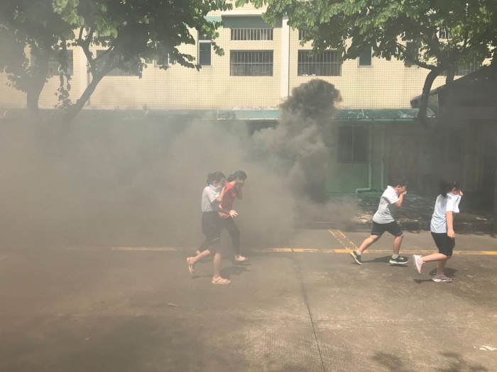 随着消防警报声响起,全体参加演练的师生各就各位,大家用手帕或衣袖等捂着口鼻,猫着腰有序地按指定路线“逃生“,班主任带着本班学生有序地疏散到指定安全区域。整个撤离演练做到了快速、安全、有序,前后衔接连贯,未造成混乱场面,成功快速的疏散了全体师生,及时扑灭了大火,取得了预期的效果。随后,安全处叶宝山主任为全体师生进行了消防安全知识方面的教育和讲解,使同学们掌握了一些基本的自救自护知识。