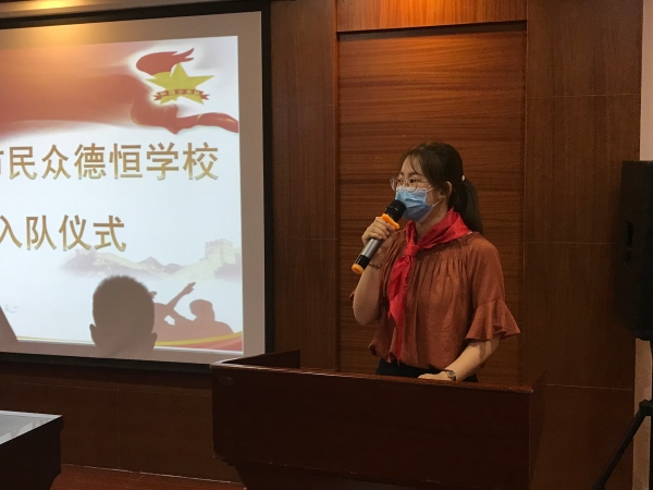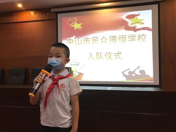 6月17日,阳光明媚,微风习习,上午九点整,中山市民众德恒学校少先队大队部在校大会议室隆重举行了一年级新队员的入队仪式。