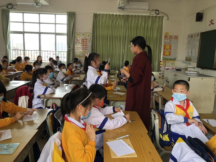 本节主题班会课,南朗小学邀请了前火炬开发区中心小学副校长陈丽校长来到课堂听课和评课。南朗小学陈敏华校长、肖凯铨德育副校长,严丽娴主任和林舒敏主任以及学校其他班主任老师们都参与到听课中,老师们学习氛围浓。