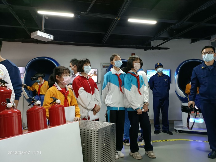 2022年3月7日上午,南朗小学获奖师生参加了寒假消防安全作业颁奖活动,负责学校消防安全事务的王扬武副主任带领获奖的几位学生到中山市消防救援支队南朗大队领奖。在完成了简单而又隆重的颁奖活动后,消防大队相关领导安排大家进行了一次沉浸式的消防知识体验活动。活动既有专业知识的讲解更有仿真度极高的体验,既有各种类火灾事故惨痛教训的案例,也有各方面预防火灾的技巧。全过程深深吸引了大家的注意力,尤其是亲身体验包括VR设备更是让人意犹未尽。