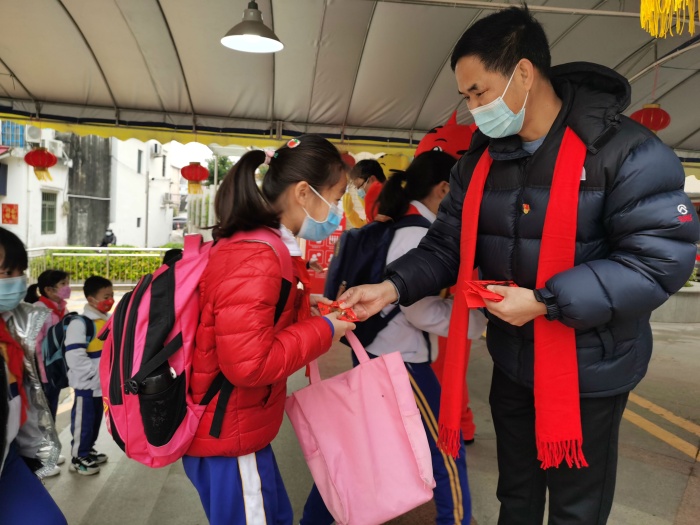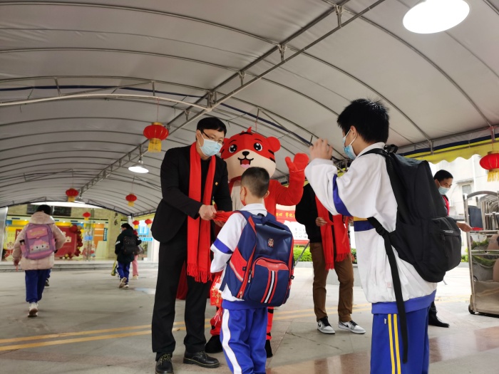 风恬日暖荡春光,鉴海学子扬新航。南朗小学校园内显得格外的生机勃勃,沉寂了一个寒假的校园变得富有生命活力,一大早,全体行政领导齐聚校门口迎接每一位学子并送上祝福,在这幸福祥和的日子里,迎来了南朗小学 2021-2022 学年第二学期“踔厉奋发 一起向未来”开学典礼。