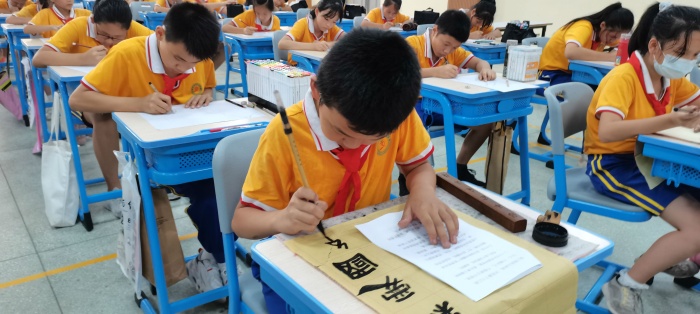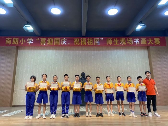 为庆祝中华人民共和国成立72周年,进一步深化青少年“扣好人生第一粒扣子”主题教育实践活动,培养少年儿童爱国主义精神,南朗小学于2021年9月30日下午在南朗街道南朗小学举行“喜迎国庆,祝福祖国”爱国主义主题书画现场比赛活动。