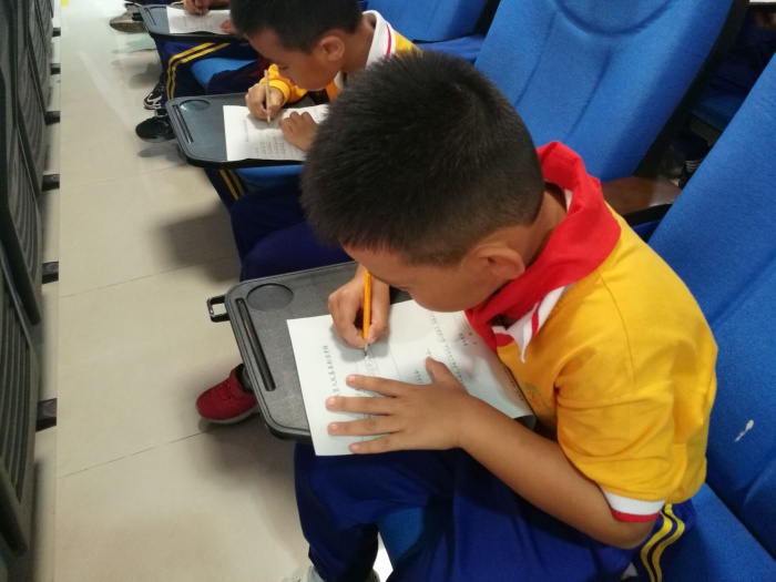 活动伊始,大队部辅导员林舒敏老师通过短视频,让同学们初步了解少先队的相关知识。接着,林老师针对“六知六会一做”展开,让各预备队员复习回顾少先队队名、创立者和领导者;知道队旗、队徽含义;知道少先队的标志和作风。会戴红领巾、敬队礼、会呼号、会唱队歌以及会背诵入队誓词。预备队员们全神贯注,认真聆听辅导员的讲解,最后,林舒敏老师进行现场队知识小考核,二年级的同学们一笔一划认真书写着,最后交上满意的“答卷”。