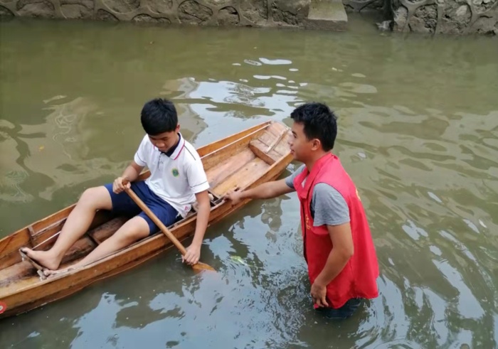 研学活动中,同学们还在会长和队员们的保护下在河道中体验了单人农艇扒行,亲身感受这一具有历史和文化价值的运动。