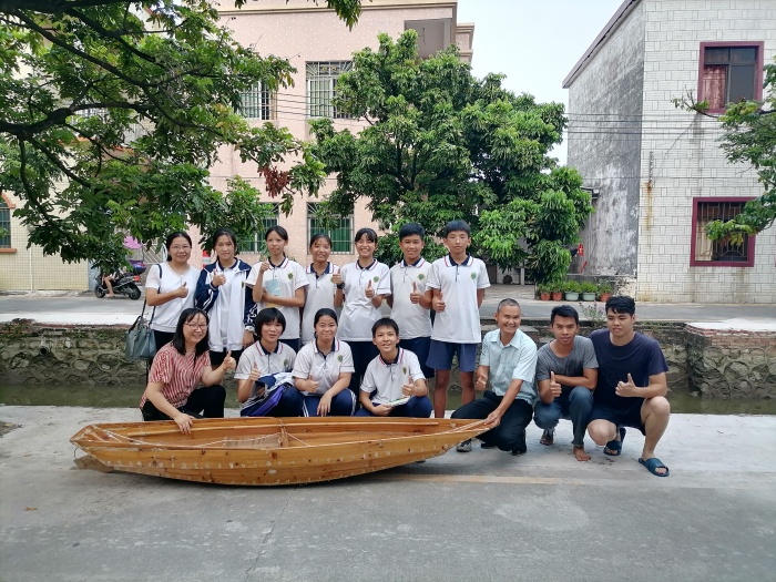 活动由牛角中学华逢梅老师和阜沙中学陈浩芳老师带队,前往牛角正河(阜沙镇单人农艇训练基地)开展研学。阜沙镇单人农艇协会陈建华会长向同学们详细介绍了单人农艇起源、农艇构造、功能和优缺点等,同学们认真聆听、记录,并结合各自研学目标对会长和农艇队员们进行访谈。