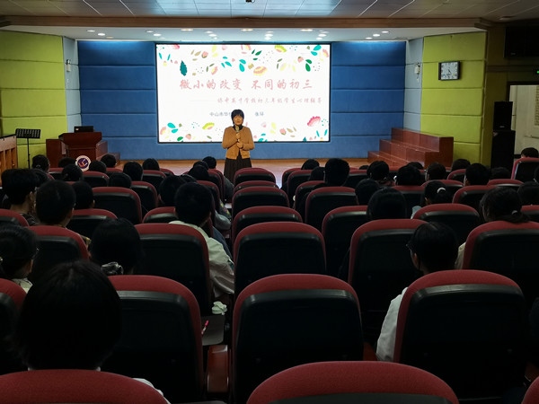 为舒缓初三学子的学习压力,侨中英才学校邀请了中学心理高级教师、中山市心理健康教育教研组副组长、中山市华侨中学名师工作室主持人张环老师,于12月24日下午在学校多功能厅为初三毕业班全体学生开展心理辅导讲座。