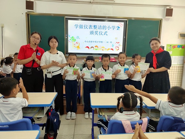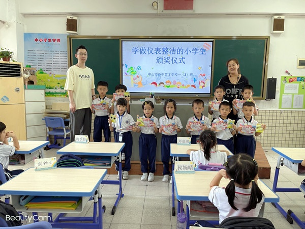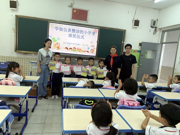 良好的仪容仪表是涵养的外在表现,穿着是否得体,举止是否有度,都能反映出个人的精神面貌。为了进一步规范一年级小学生的仪容仪表,引导他们树立正确的审美观念,培养他们良好的卫生习惯和行为习惯,9月27日下午,侨中英才学校“雅美”班主任工作室组织一年级全体学生进行一场以“学做仪表整洁的小学生”为主题的仪容仪表比赛。