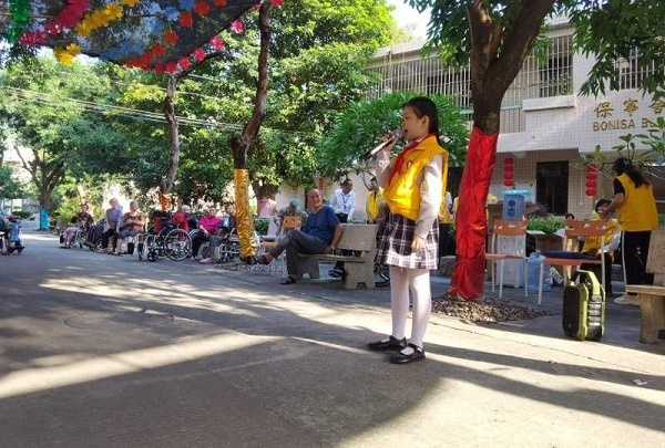 为进一步弘扬孝老爱亲、尊老爱幼的传统美德,引导学生们尊重老人,孝敬长辈,学会感恩,侨中英才学校以“重阳节”为契机,团委、少先队组织师生志愿者服务队带着浓浓的真情,于10月26日下午来到环城颐老院,为老人们送上节日的祝福与问候。